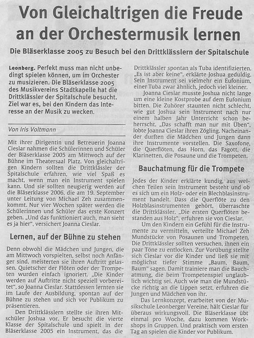 2005 zu Gast an der Spitalschule Die Leonberger Kreiszeitung berichtet über